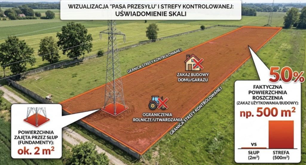 Czy służebność przesyłu ogranicza mnie tylko na terenie, gdzie stoi słup?
